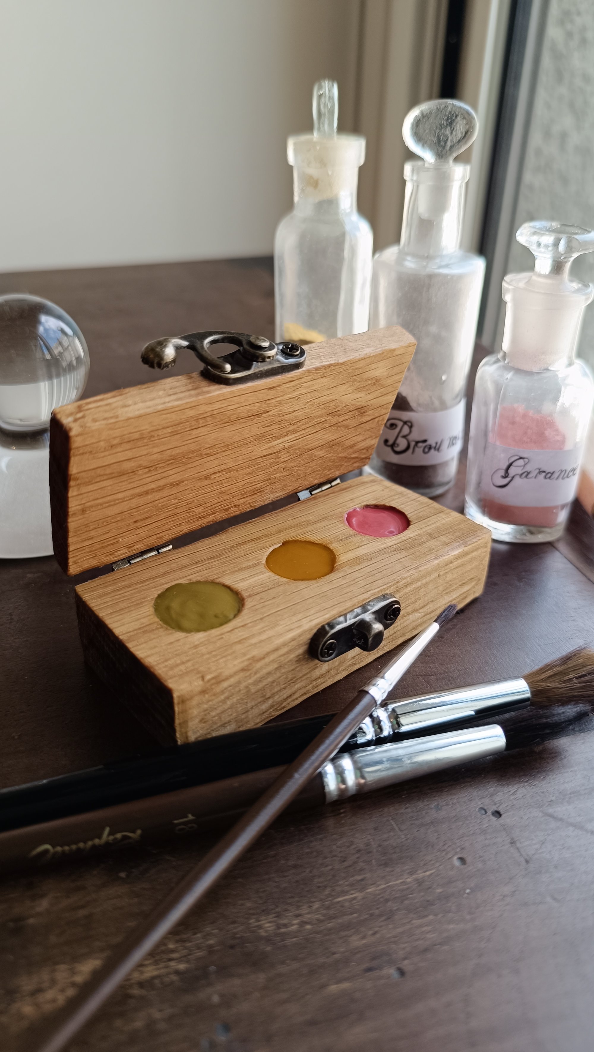 Apprenez à reconnaître les plantes tinctoriales, à en extraire les couleurs et les transformer en pigment laque. Composez votre palette d'aquarelles artisanales grâce à la technique traditionnelle du broyage à la molette et repartez avec votre palette en chêne aux trois couleurs au choix.